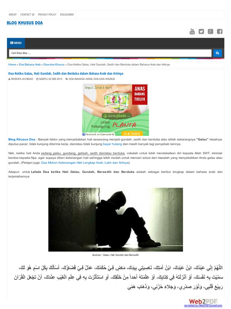 Doa Pelipur Lara Dan Doa Ketika Sedih Arab Latin Dan