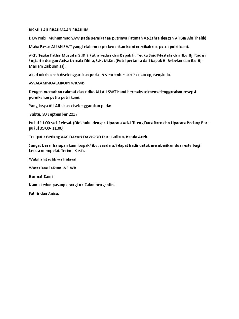 Doa Resepsi Pernikahan Pdf Document